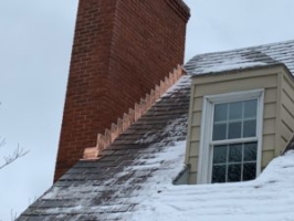 Welte Roofing was contacted in the middle of winter for an emergency chimney leak. We were able to come out, clear the snow from the roof, and replace the copper chimney flashings on this steep slate roof to keep the customer dry during the holidays.