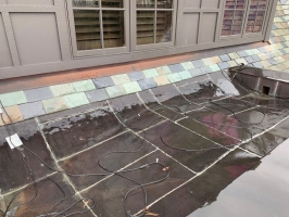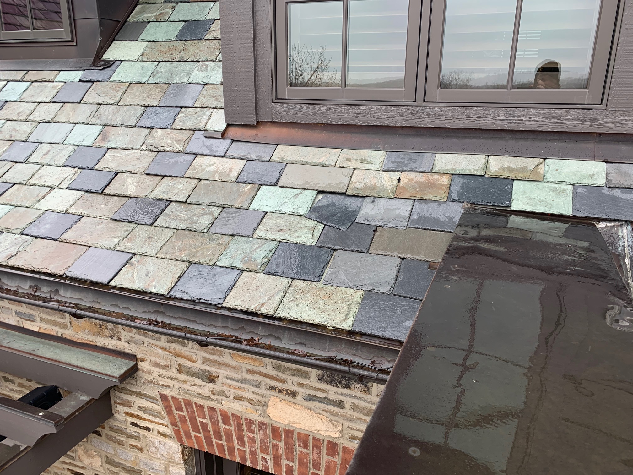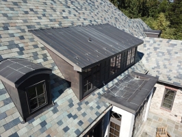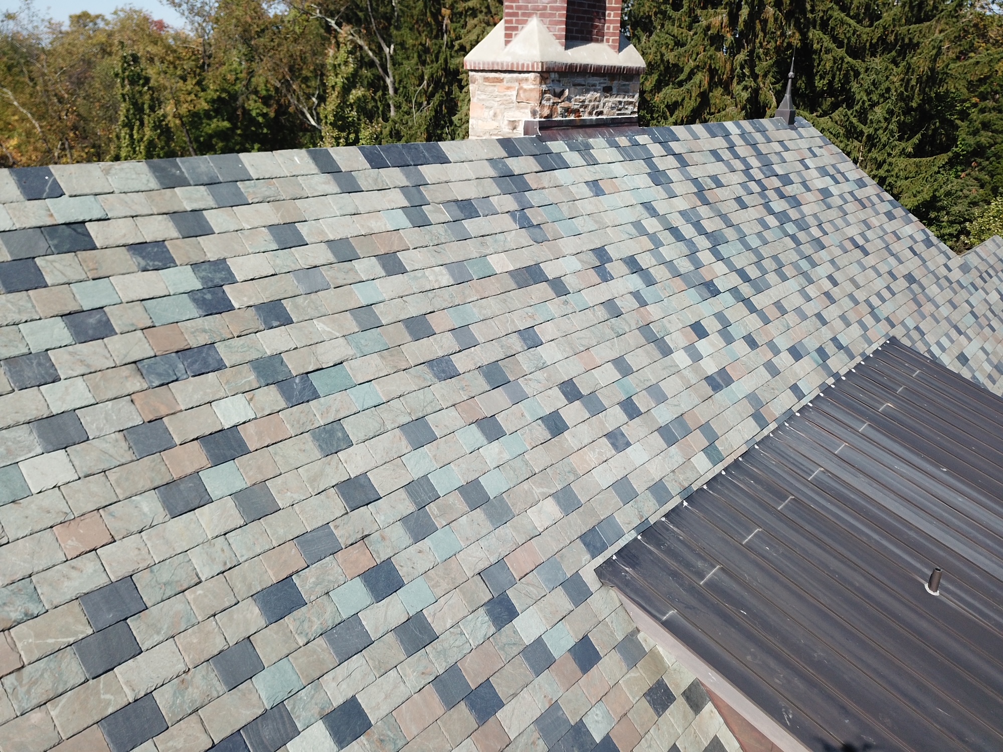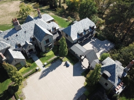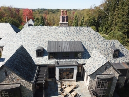 This is a custom built home in Fox Chapel, PA. Welte Roofing was contracted to install all the slate and copper work on the sprawling property. The multi-color blend in the slate is a perfect complement to the architecture and is set-off by custom copper accents.