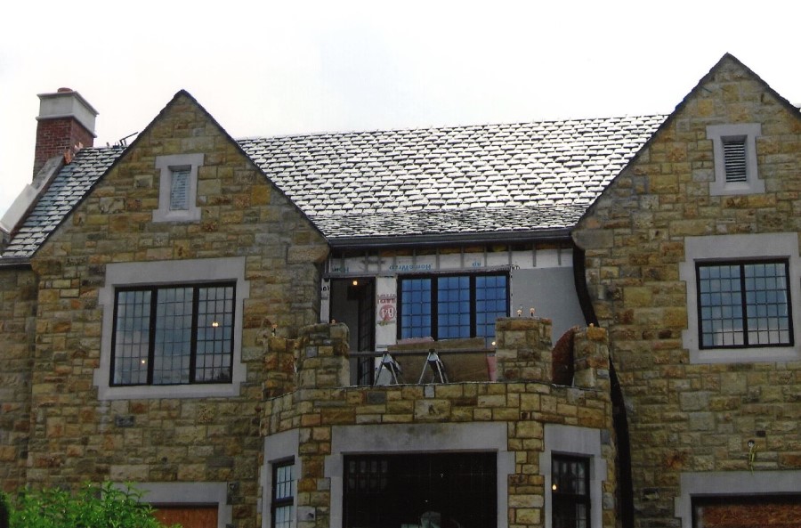 Welte Roofing was contracted to install a new slate roof on the customer’s home expansion. The slate used is a thicker product from Virginia Slate. It presents a rustic look and is extremely durable. The look is completed with new copper wall and chimney flashings.