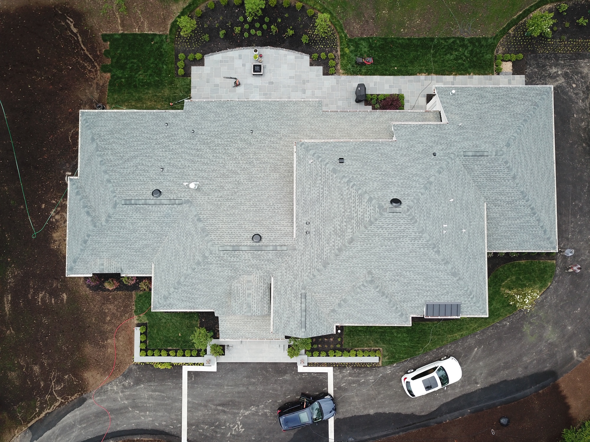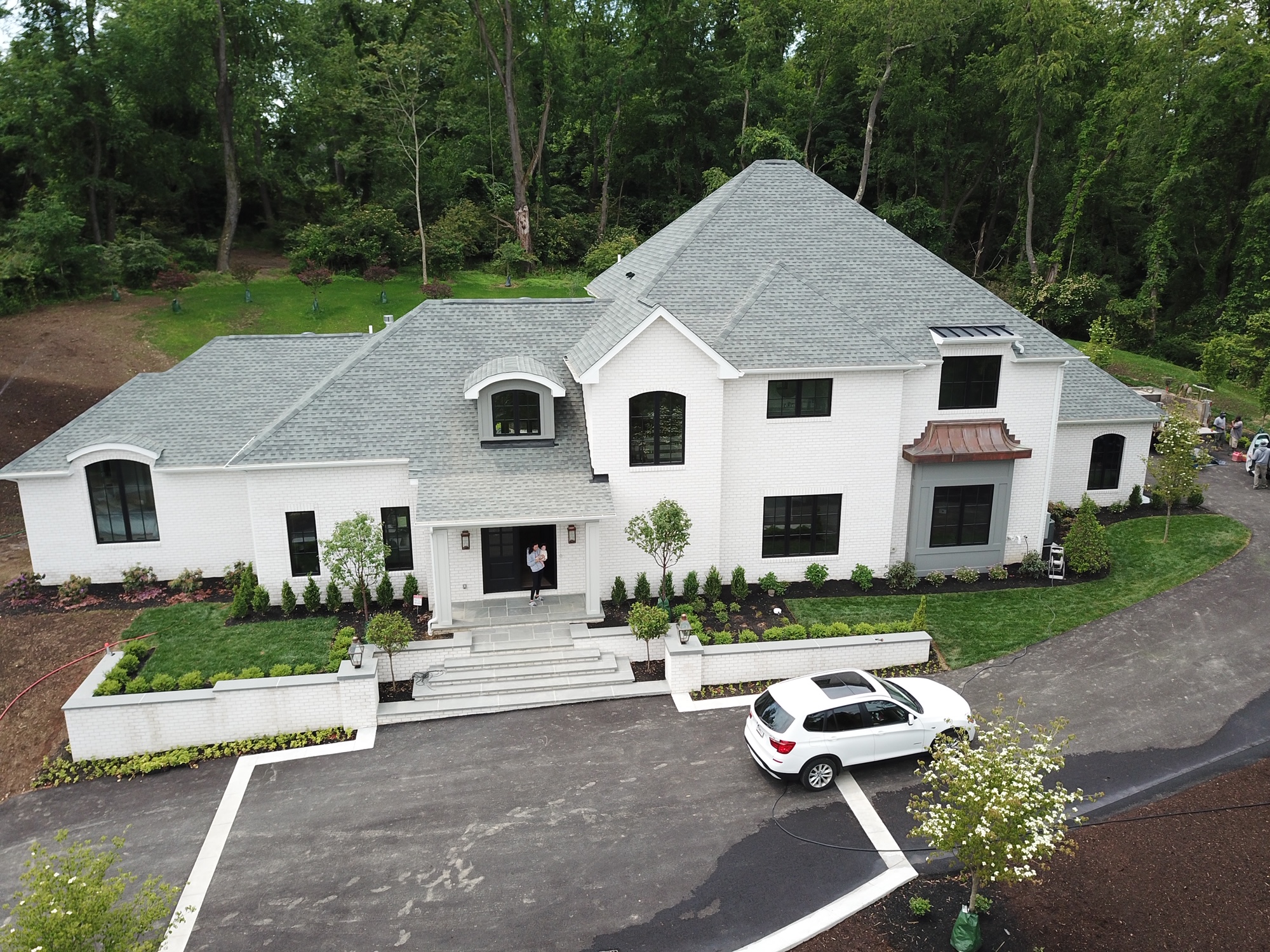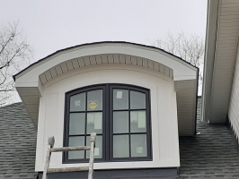 This is a beautiful new construction build. Welte roofing installed new dimensional shingles, two barrel dormer roofs, a small standing seam aluminum dormer roof, a customer copper bay window roof, hidden vent soffit, aluminum fascia, gutters and downspouts. It was a complete package install from start to finish!
